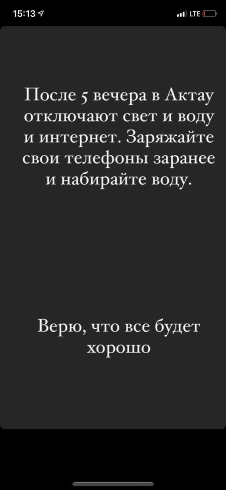 Сегодня, 4 января, жители Актау активно пересылают друг другу в социальных сетях и мессенджерах информацию том, что сегодня вечером в Актау отключат подачу электричества и воды.