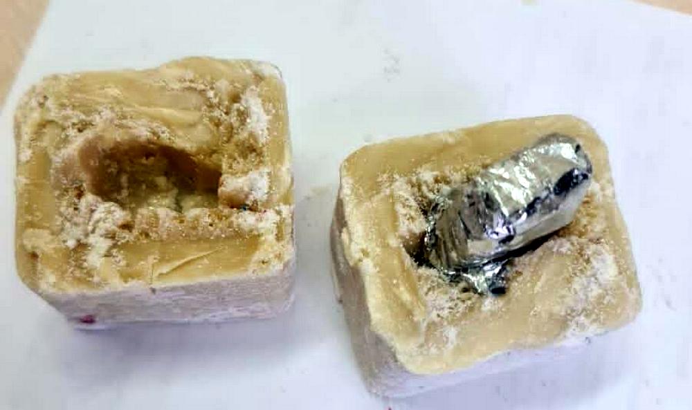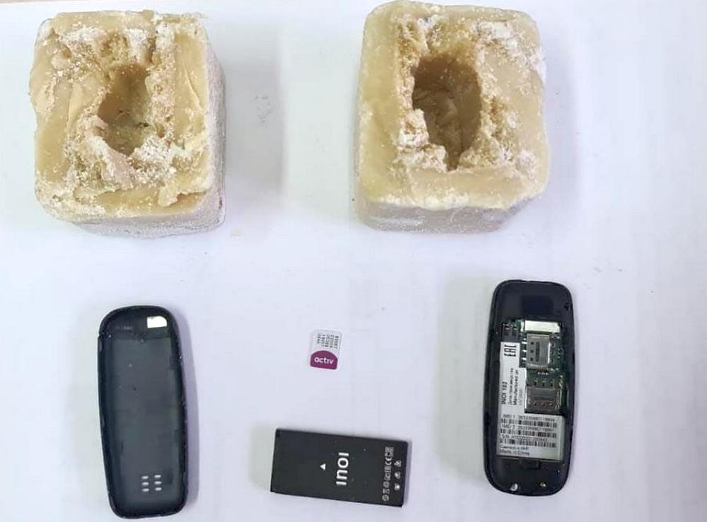 При досмотре передачи сотрудники учреждения обнаружили запрещённый предмет, а именно сотовый телефон, который был спрятан внутри хозяйственного мыла.