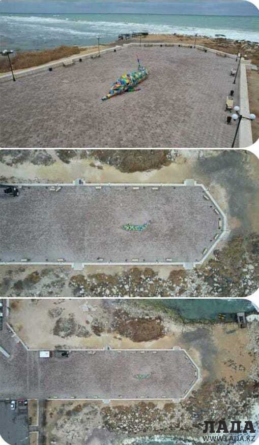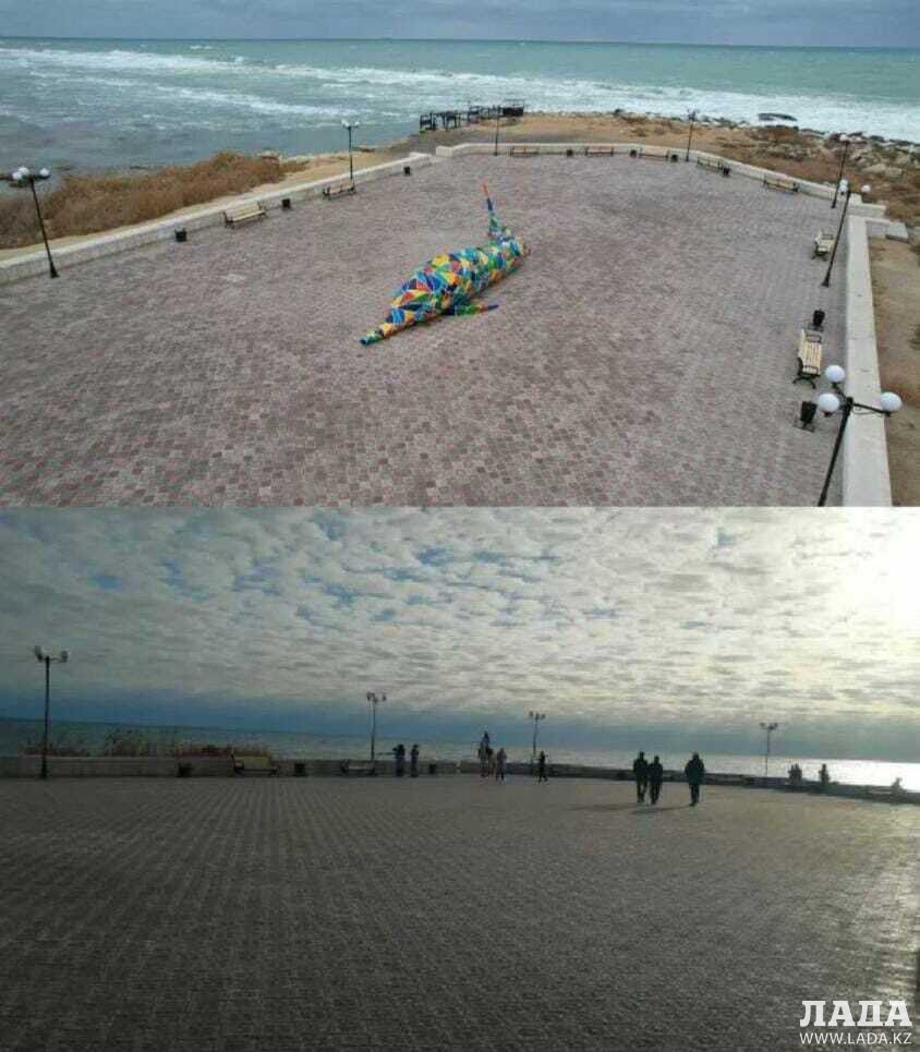 Сегодня, 8 февраля, жителей Актау удивило исчезновение архитектурного объекта «Осетр» на набережной.