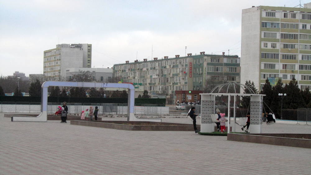 Часть площади Ынтымак в 11 микрорайоне огорожена. Горожане задались вопросом, почему её обнесли металлической оградой.