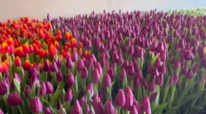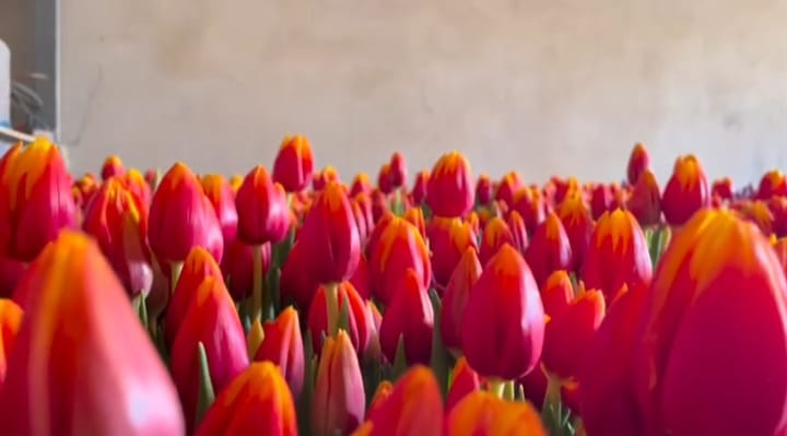Выращенные своими руками тюльпаны Берекет Беков доставляет заказчикам, которые закупают у него цветочную продукцию оптом. Розничной продажи у мужчины нет.