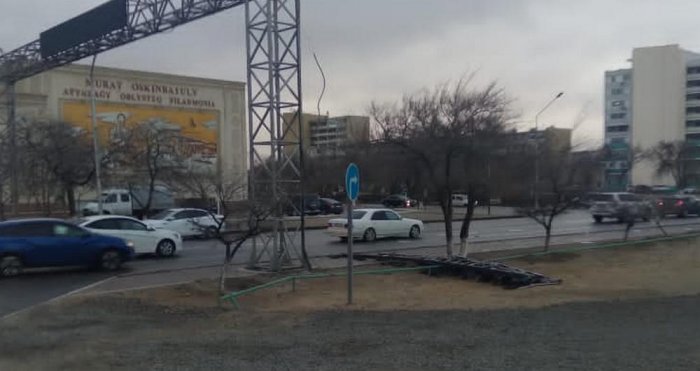 Еще один неприятный инцидент произошел напротив здания областной филармонии в 5 микрорайоне. Там ветром с опорной конструкции сорвало LED экран.
