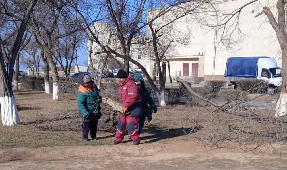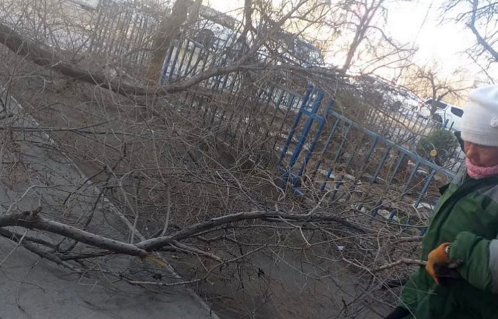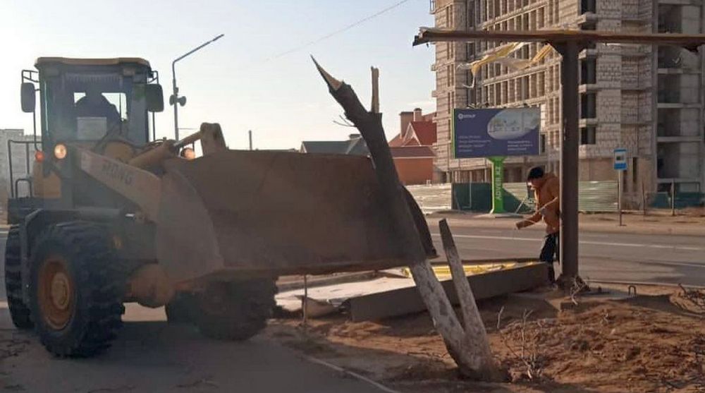 В настоящее время сотрудники коммунального предприятия «Кала жолдары» и ЖКХ проводят совместные работы по уборке упавших деревьев и восстановлению баннеров.