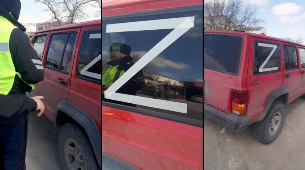 Местный автовладелец снял на видео в черте города сегодня, 19 марта, водителя Jeep Cherokee, на стекле которого была наклейка «Z».