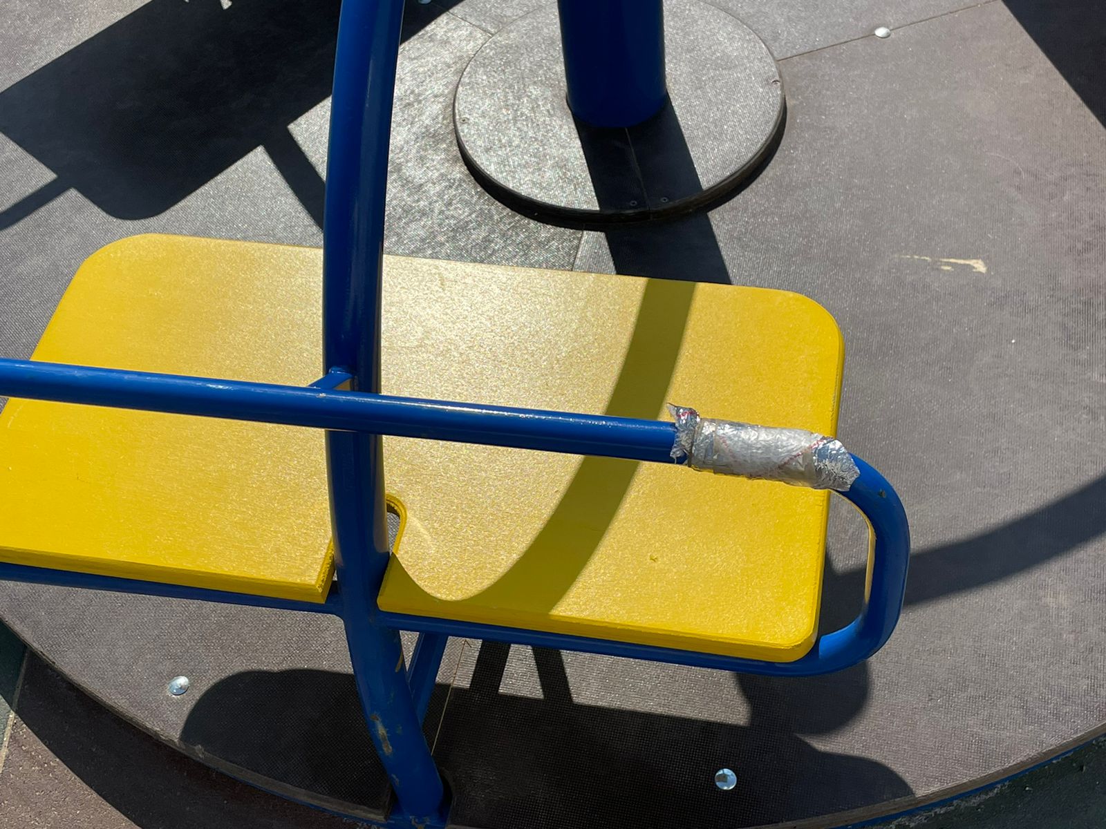 В доказательство своих слов женщина прислала в редакцию Lada.kz фотографии детской площадки. На снимках видно, как кто-то налепил скотч на ручку барабана. Видимо, из-за дефекта.