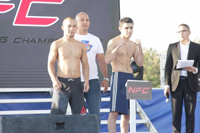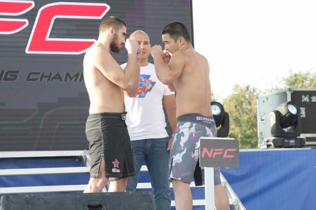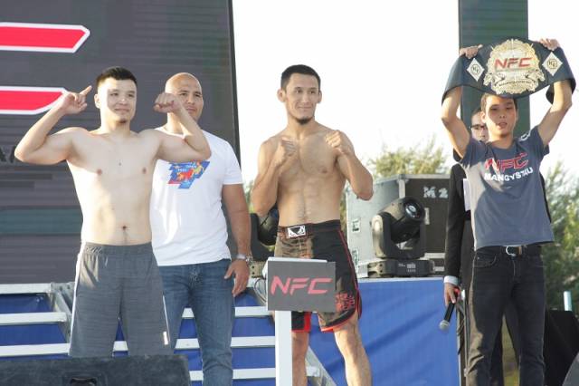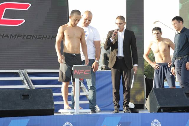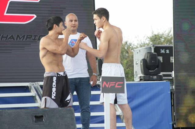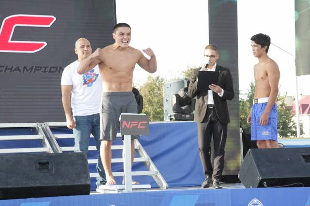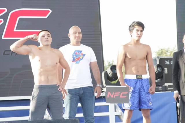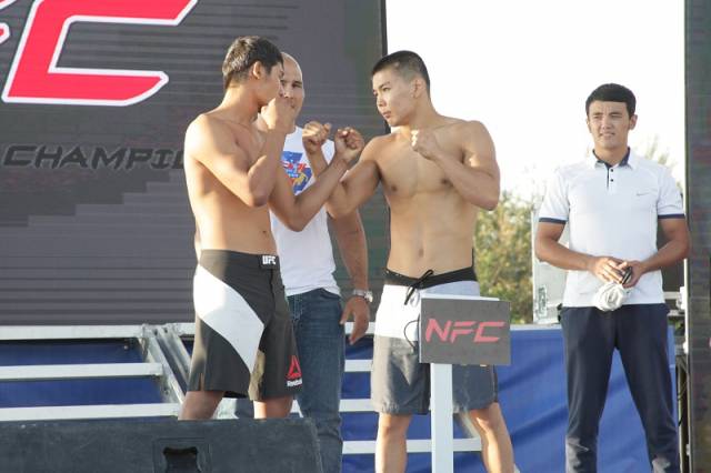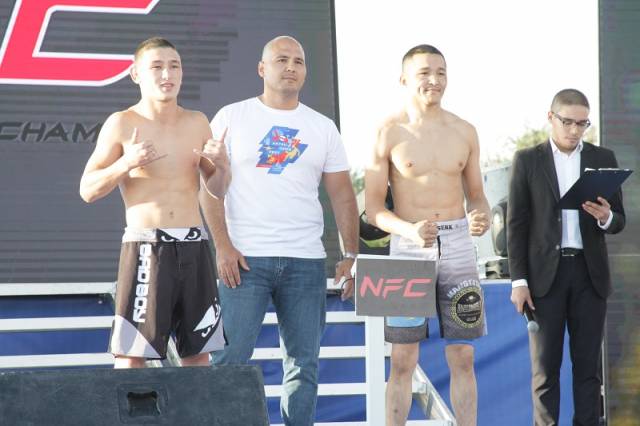 Дамир Исмагулов и Ильяс Чынгыз Уулы на церемонии взвешивания