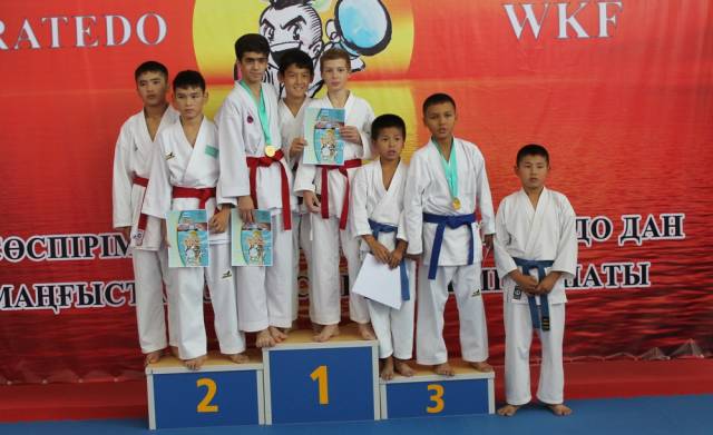 В командном кумитэ среди мальчиков 12-13 лет первую ступень пьедестала заняла команда тренера Руслана Саидова из спортивного комплекса «Волна», на втором месте - команда Султана Раима из Мунайлинского района, на третьем месте - команда Мираса Шамова из Жанаозена.