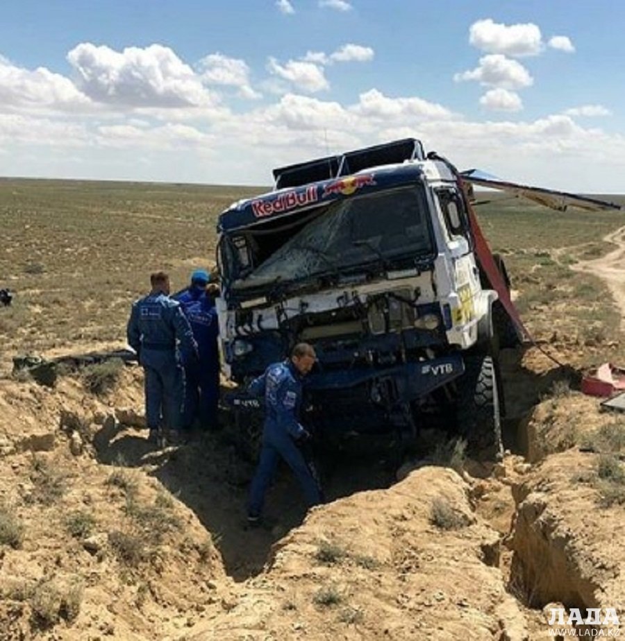- Отсечка срабатывает при превышении допустимой скорости. В какой-то момент организаторский прибор GPS, установленный у пилота Эдуарда Николаева, стал показывать превышение скорости в 143-144 километра в час. Пилот начал сверять показания с дублирующим прибором GPS, установленным у штурмана Евгения Яковлева. Второй организаторский прибор фиксировал скорость 138-139 километров в час. Спидометр автомобиля также показывал эту скорость. Но за каждый километр в час превышения скорости назначается штрафное время, это беспокоило пилота, поэтому в его диалоге со штурманом был главный вопрос - какому прибору верить. Это общение длилось считанные секунды, но их хватило, чтобы взгляд пилота отвлекся от дороги на приборы, и грузовик угодил в глубокую промоину на третьем километре маршрута, - рассказали участники гонки.