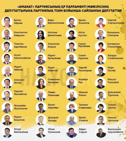 По итогам голосования в Мажилис прошли шесть из семи участвовавших в выборах партий. Партия Amanat получила 40 мандатов, «Ауыл» - 8 мандатов, по 6 мандатов у Respublica и «Ақ жол», 5 мандатов у НПК и 4 мандата у ОСДП.