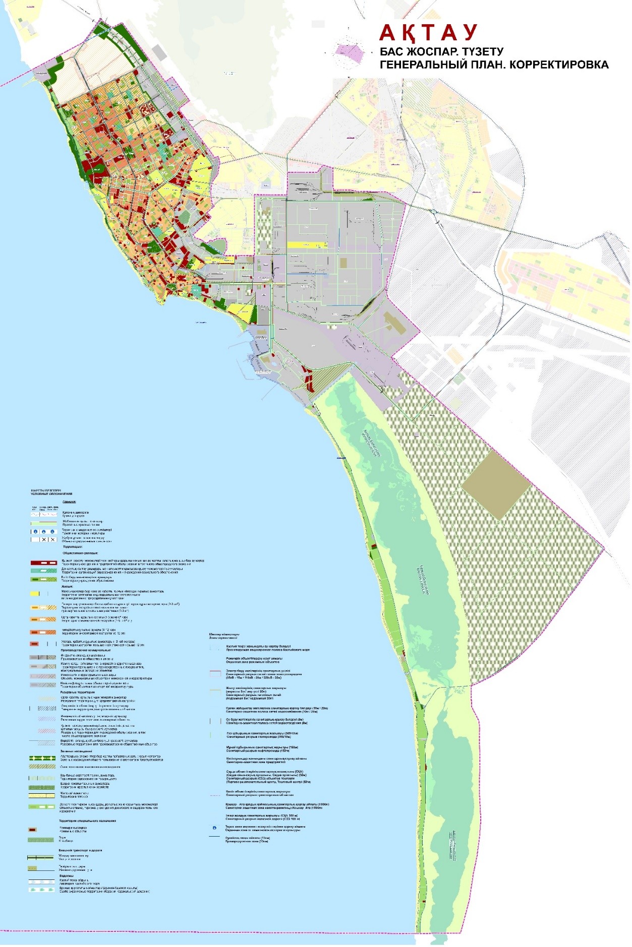 Он разработан на территорию 62,1 квадратных километра в пределах города Актау, с учетом новых административных границ, включающих акваторию Каспийского моря.