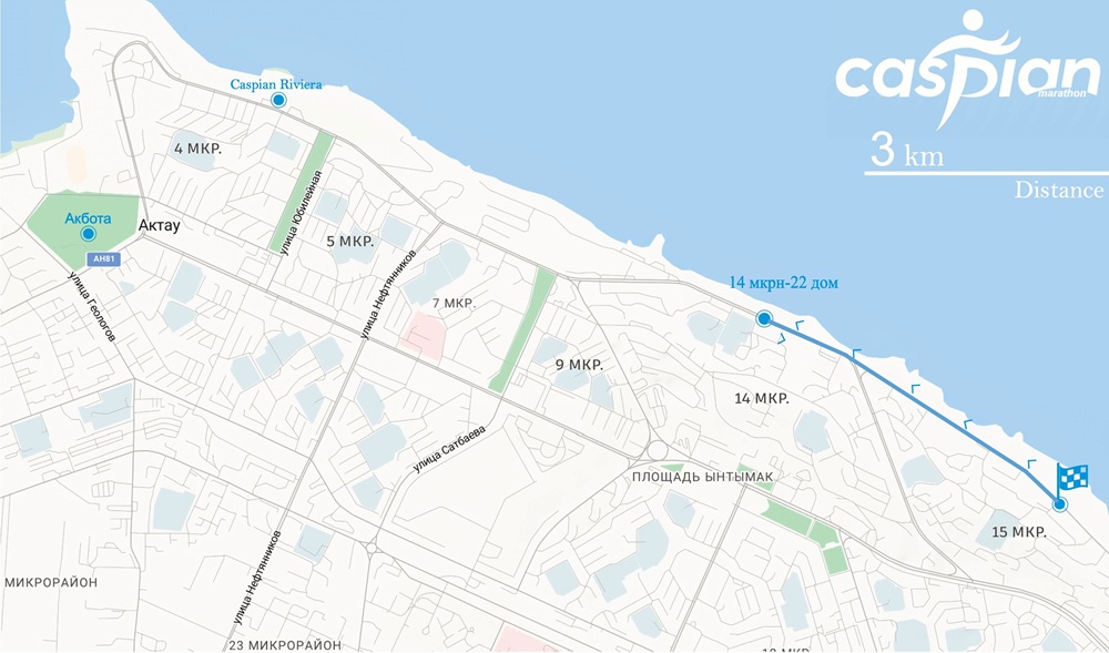 Городской полумарафон «Aktau Half-Marathon» предлагает разнообразные дистанции – 3,5 км; 10 км; 21 км 97,5 метра и 10 км - скандинавская ходьба.