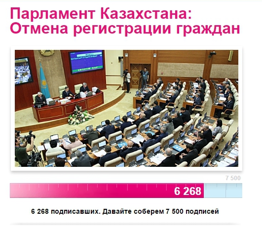 Казахстанские пользователи Интернета начали сбор подписей против новых правил, касающихся временной регистрации граждан. Текст обращения был размещен на днях на сайте Avaaz.org.