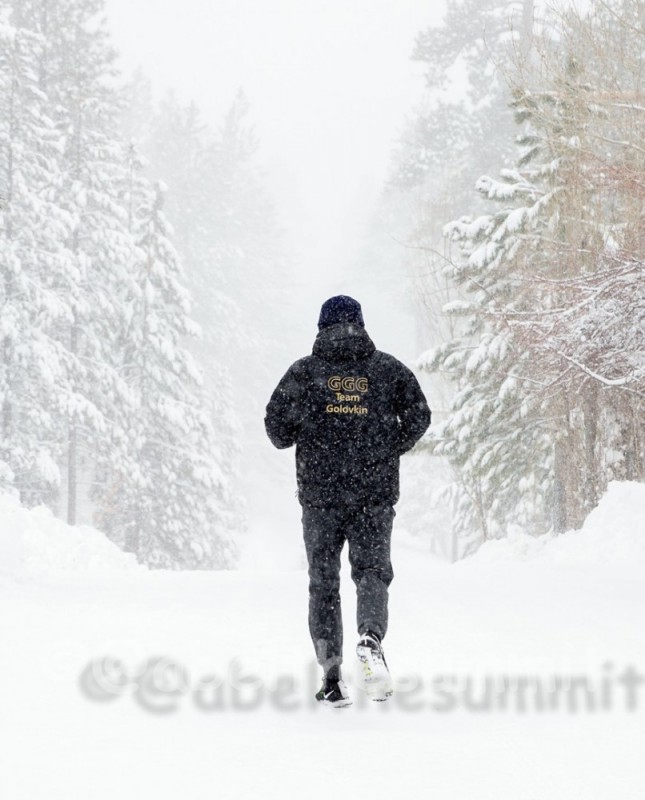 Обильный снегопад прошел на территории лагеря Абеля Санчеса Big Bear в Калифорнии, однако из-за этого GGG не стал отказываться от запланированной пробежки.