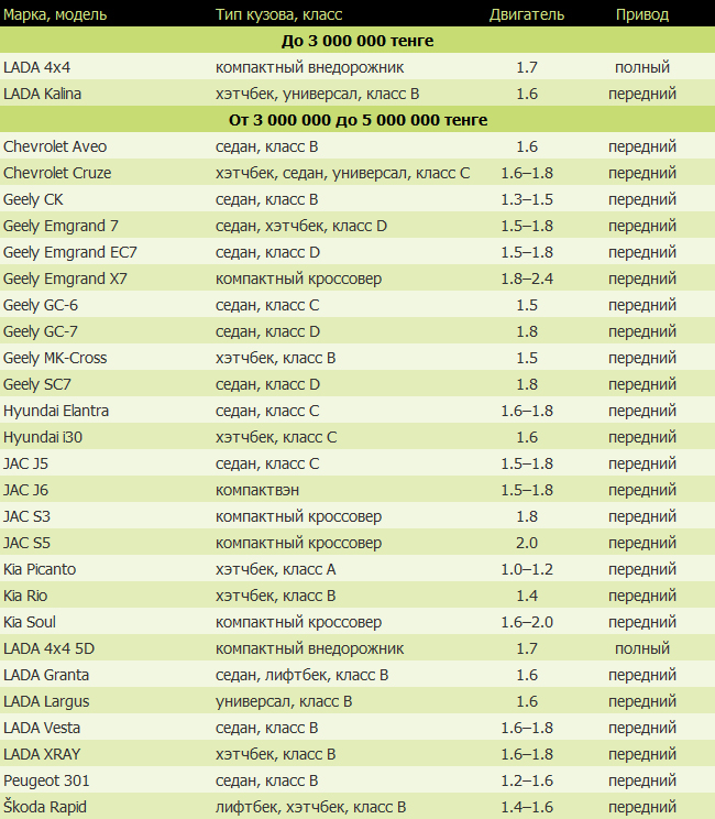 Сейчас в списке машин, на покупку которых можно взять льготный автокредит, 61 модель, а год назад их было 55. Произошло это благодаря тому, что лимит подняли до 15 млн тенге, таким образом дав возможность купить в кредит любой авто отечественной сборки. В том числе такие дорогие машины, как Toyota Fortuner, Hyundai Santa Fe, Skoda Superb, SsangYong Chairman и Kia (Carnival, Sorento, Cadenza и Quoris). За бортом остался только внедорожник Kia Mohave, цены на который начинаются с 15.6 млн тг.
