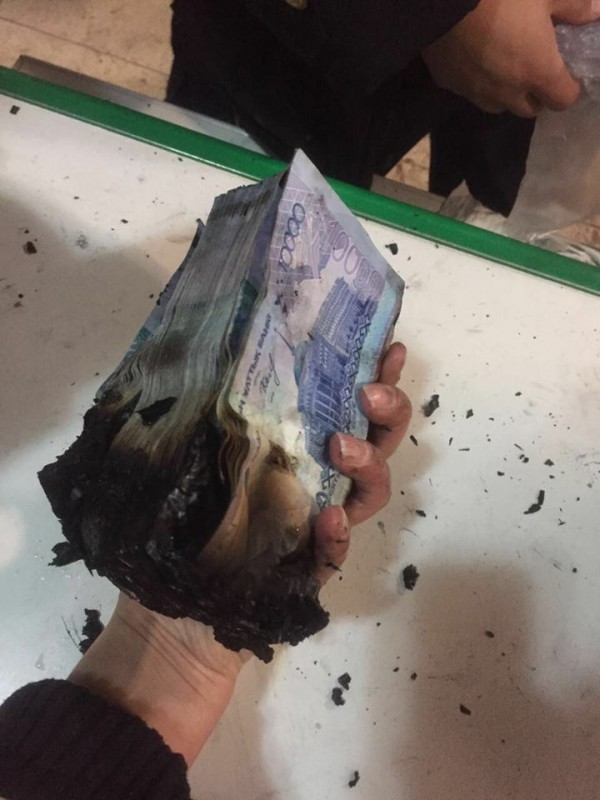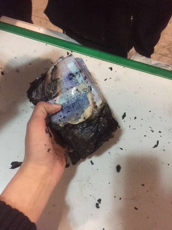 В Сети появились фотографии обугленных десятитысячных купюр, сообщает корреспондент Tengrinews.kz. Выяснилось, что это итоги неудачной попытки ограбления банкомата, расположенного в одном из магазинов в поселке Сарыозек Алматинской области.