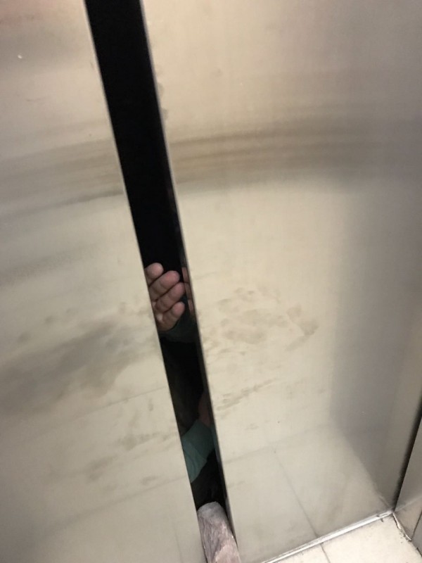Людям в лифте пришлось изнутри раскрывать створки, чтобы не задохнуться. Фото очевидца.