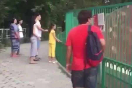 На видео видно, как молодая пара с ребёнком, дойдя до клетки со львом, увидела, что животное спит, и попыталась разбудить его камнями.