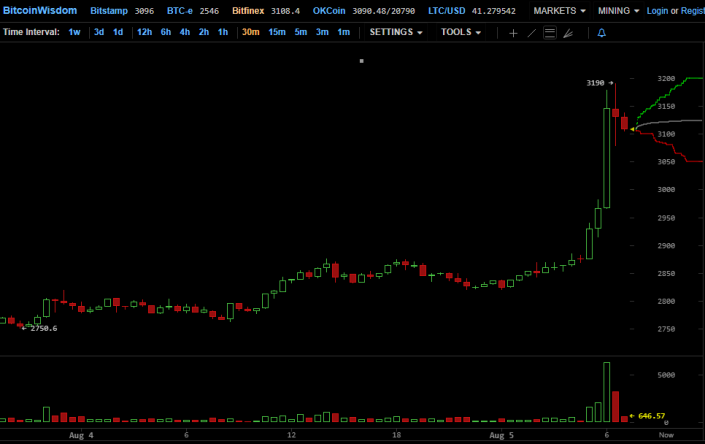 Утром, 5 августа, цена первой цифровой валюты на ряде бирж уверенно преодолела отметку в 3100 долларов, пишет ForkLog.