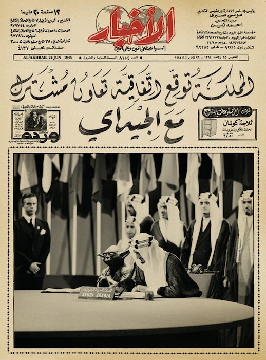 Создатель изображения, где Йода сидит рядом с Фейсалом бен Абдель Азизом, саудовский художник Абдалла аш-Шахри признался, что создал целую серию таких снимков, разместив на исторических фотографиях с помощью фотошопа популярных современных персонажей с целью "сделать их менее депрессивными". Он пояснил, что неслучайно поместил именно Йоду рядом с монархом.