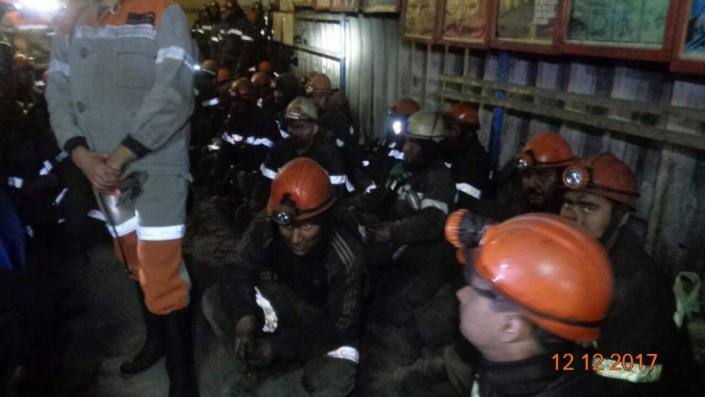 По его словам, сказать точно, сколько человек сейчас находится под землей, невозможно, так как люди могут как выйти, так и спуститься. "Я говорю примерные цифры, потому что они могут приезжать, выезжать", - сказал глава "Коргау". "Где-то более 150 человек покинули шахту. Кого устроило предложение "АрселорМиттал Темиртау" -выехали. Может, 160, может 165 человек. Кто-будет стоять на повышении на 100 процентов - те остались. Но ситуация такова, что все осталось по-прежнему, ничего не сдвинулось. Все понимают ситуацию, и ждут предложения, которое всех устроит. Вы думаете, там под землей легко? Мы третьи сутки ночуем на шахте. Но наши условия не сравнить с условиями бастующих. Там нет света. Нельзя курить. Человек постоянно находится на "свежей струе" - шахту проветривают", - отметил он. По словам самих горняков, жизнеобеспечение шахты - непрерывный процесс, в шахту каждый день спускаются около 20 человек, которые поддерживают водоотлив, воздухоснабжение. Без них шахта остановится. "На все шахты по обычному расписанию ходят горняцкие автобусы. Многие горняки не спускаются в шахту, а все свое рабочее время проводят на территории предприятия или в актовом зале шахты. Затем уезжают домой. Кто-то приезжает вне смены, чтобы проведать родственников или близких, по-прежнему находящихся в шахте", - рассказал один из шахтеров. Фото предоставлены бастующими шахтерами 11 декабря горняки четырех шахт "АрселорМиттал Темиртау" после смены не поднялись на поверхность. Позже появилось информация, что к ним присоединились еще четыре шахты. По информации, публикуемой в социальных сетях родственниками бастующих, требования шахтеров касаются повышения заработной платы и улучшения условий труда. 13 декабря появилась информация, что несколько горняков поднялись из шахт из-за плохого самочувствия. В МВД заявили, что никаких задержаний по этому поводу не было.