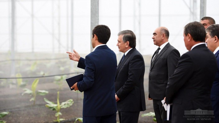 Как сообщает новостная служба Сa-news, президент Узбекистана Шавкат Мирзиеев в рамках рабочего визита в Андижанскую область ознакомился с открытием банановой и помидорной теплиц, созданных по методу гидропоники. В теплице площадью два гектара выращиваются саженцы бананов.