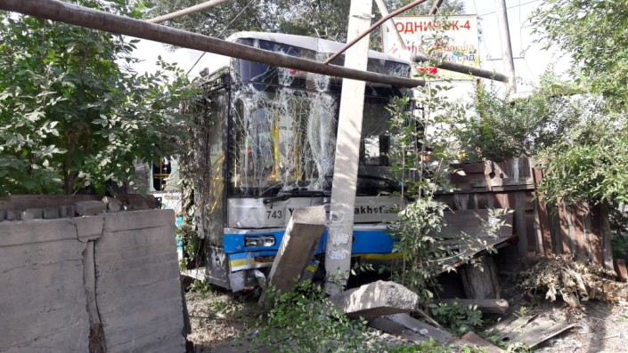 Маршрутный автобус №45 снес ограждение и врезался в газовую трубу в Алматы, сообщает корреспондент программы "Территория происшествий" на телеканале СТВ.