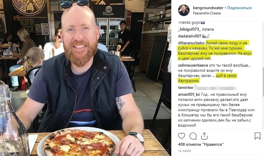 Если мысли о столице и даже частые упоминания Бората казахстанцев устроили, то отзыв о бешбармаке вызвал волну гнева – иностранец заявил, что считает блюдо ужасным. В ответ он получил десятки негативных комментариев в Instagram.