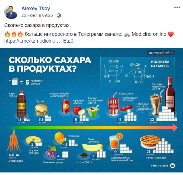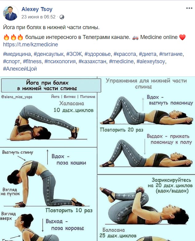Министр проводит время в социальной сети с пользой — там он размещает полезные лайфхаки о здоровье: