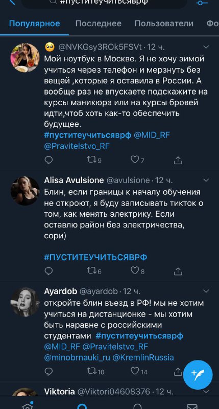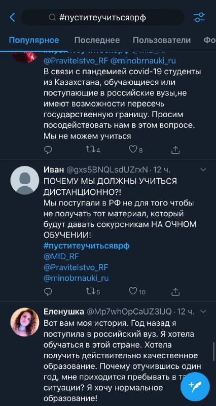 Пользователи даже придумали собственный хэштег – «ПуститеУчитьсявРФ». Если пройтись по нему, то можно увидеть сотни твитов от недовольных студентов:
