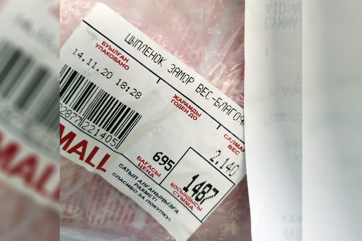 «Магазин SMALL, Алматы, Жарокова/Жамбыла. Купил матушке двух цыплят. На этикетке цена 695 тг за кило. Кассир пробивает их на кассе уже по 899 тг за кило. Я, как всегда, не смотрю на чек и несу птиц маме. Она, как бывший финансист, сразу видит обман», - написал пользователь.