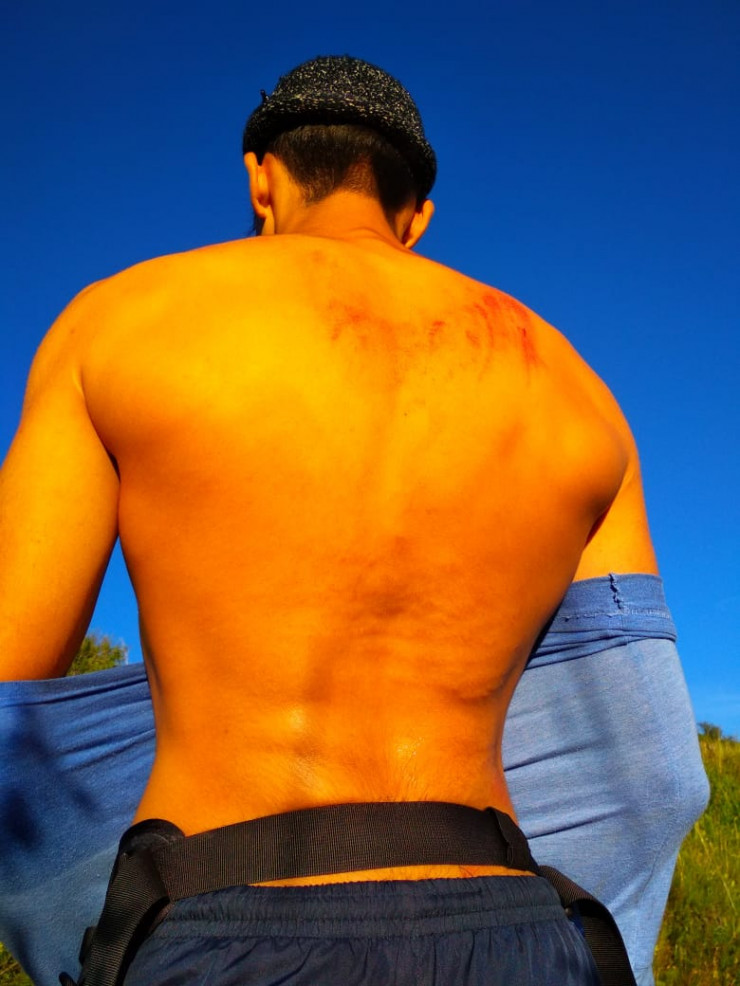 Я понимаю, что хруст был. Надо куда-то бежать. Я по диагонали от камня начинаю бежать. На скалах была тина, жижа скользкая. Я поскальзываюсь и, получается, падаю под камень. В этом месте была промоина, я попал в эту промоину, часть камня откололась, попала мне на спину. Из-за того, что там была вода, весь вес камня я не ощутил на себе, и, получается, поток воды вытолкнул меня. Я выбрался без сильных повреждений, только спину себе поцарапал и сломал зубы", - рассказал Роман Бачевский.