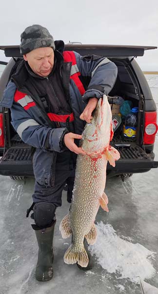 - Мы приехали, поставили закидушки на карасика, - вспоминает он. - Клюнула щука. Я сначала не подумал, что она такая большая. Думал - ну 5 кг максимум. Начал тянуть, поборолся с ней - щука тянет, я её отпускаю, потом слабину не даю, потом раз, раз, раз, подвожу, подвожу... Только к лунке поднес - она опять вырывается. Муть со дна подняла. Потом голову увидел щуки, отец принес багорчик. Им подцепил, но не могу ничего сделать. Только двумя баграми из лунки на 150 мм пытались выловить. Думали лед долбать... Но я опытный рыбак, так что с трудом и треском мы ее вытащили! Не каждый день таких щук ловим. Я обычно не верю, когда кричат про большую рыбу, наш рыбак любит приукрасить. А тут - у самого 14,5 кг.