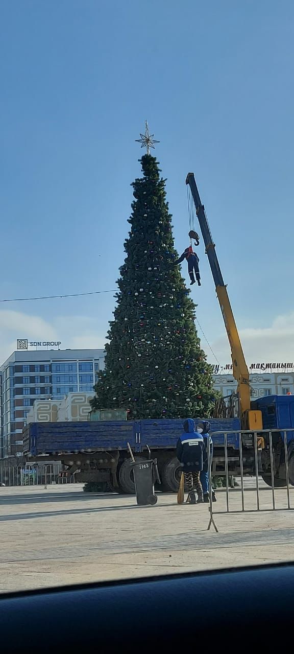В Сети появилось фото, как украшают новогоднюю елку в Атырау. Там изображен работник, который повис над деревом на веревке. Казахстанцев позабавило это фото. Ситуацию Sputnik Казахстан прокомментировали в городском акимате.