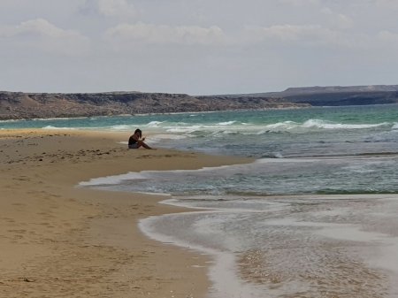 Ещё мне казалось символичным, что любое такое путешествие всегда завершалось на песчаном пляже Саура. После всего пережитого за эти несколько дней (солончака, светящегося на солнце; звёздного неба у «клыков» Бозжиры, нависшего так низко, что кажется, будто Гера и, правда, пролила молоко рекой; глубокой тишины подземных мечетей), ты вдруг оказываешься на берегу лазурно-голубого моря.