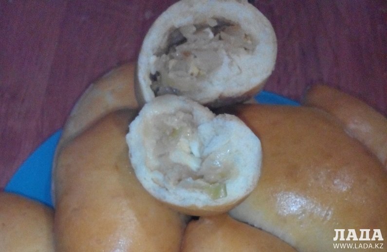 Начинка: чуть больше полукилограмма капусты мелко порубить, посыпать солью и перетереть руками. Разогреть смесь растительного и сливочного масла, кинуть туда мелко нарезанные луковицу, капусту и потушить минут 10. Добавить пряности, три сваренных вкрутую яйца (тоже мелко порубленных). Начинка готова. Я ее обычно делаю, пока тесто поднимается во второй раз.