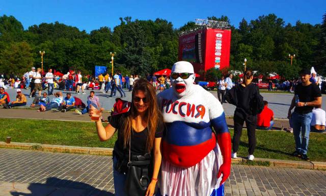 Прилетели в Москву с задержкой. И тут случился первый конфуз. В паспорте болельщика обнаружилась ошибка в отчестве. Ну, не принимала система в переводе мягкий знак, вместо него выдавала только «и». Специалисты из «Fan ID» устранили проблему, убрав отчество, и наше путешествие продолжилось. В этот же день нас ожидали съемки для канала ТВЦ в качестве иностранных болельщиков.