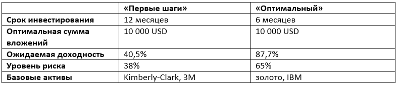 • Портфель «Первые шаги» подходит для консервативных инвесторов с риск-аппетитом ниже среднего. Бенчмарком портфеля является американский промышленный индекс S&P500. Распределение средств в разных акциях позволяет минимизировать риски портфеля и получить приемлемый уровень дохода.