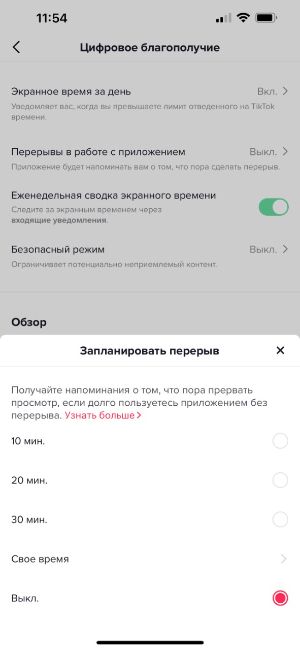 Мы уже предлагаем ежедневное ограничение экранного времени - этот инструмент помогает людям определить, сколько времени они хотели бы проводить в TikTok каждый день. Сегодня платформа представляет инструмент, позволяющий людям контролировать время, которое они проводят на TikTok за один сеанс с помощью запланированных перерывов. Эти подсказки будут напоминать людям, что пора сделать перерыв после определенного времени у экрана, которое они могут установить по своему выбору.