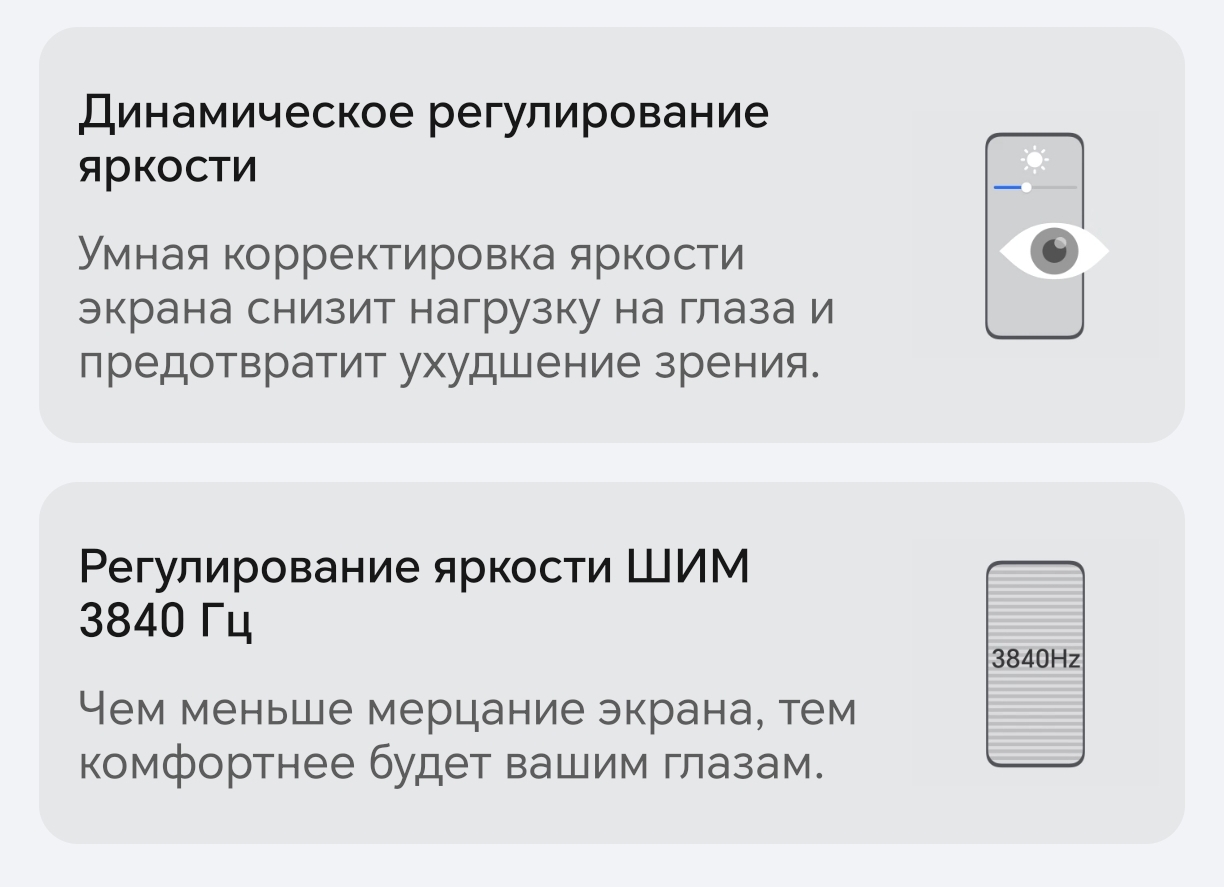 Экран оказался ещё одной сильной стороной гаджета. Он большой — 6,78 дюйма, яркий и очень чёткий. Картинка невероятно плавная. А ещё смартфон думает о вашем зрении. Я даже начала читать с телефона вместо планшета, потому что глаза совсем не устают.