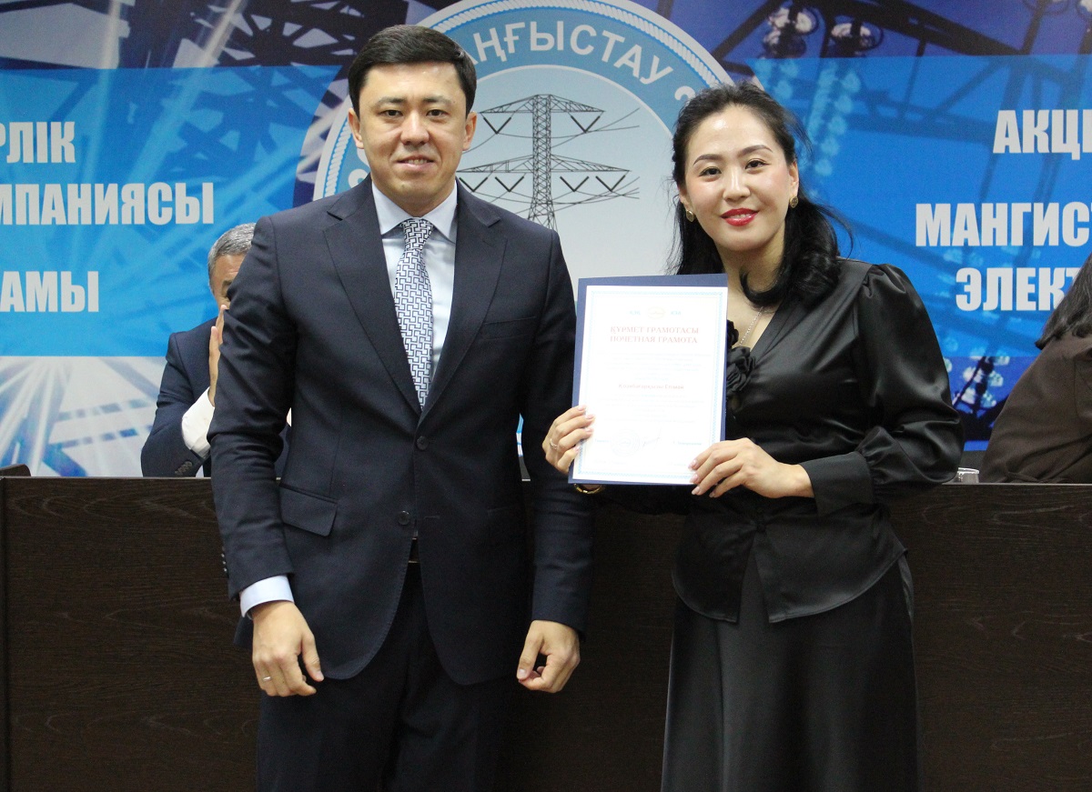 Почетными грамотами Казахстанской Электроэнергетической Ассоциации награждены: руководитель Корпоративного центра обучения Елимай Козибагаркызы; начальник Узенского РЭС Суйнгали Муханбетович Танашов; начальник Юридического управления Балжан Максатовна Иржанова; начальник Бейнеуского РЭС Кыдырбек Табылганович Майланов; ведущий инженер по наладке и испытаниям Службы испытании Ержан Аннамуратович Казахбаев.