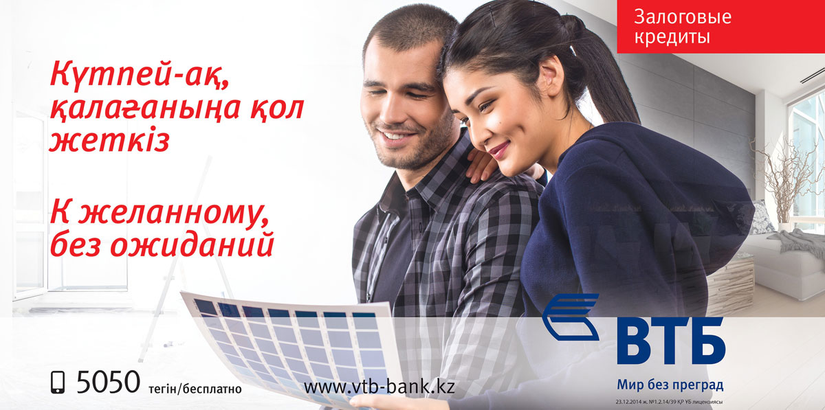 В настоящий момент Банк ВТБ (Казахстан) продолжает заботиться о своих клиентах, постоянно совершенствуя свои продукты и услуги. Например, недавно банк снизил ставки вознаграждения по кредитам. Теперь клиенты банка смогут на более выгодных условиях получить займы с залогом на сумму до 50 000 000 тенге и беззалоговые потребительские кредиты на сумму до 5 000 000 тенге. Подробности можно узнать по номеру 5050 с мобильного.