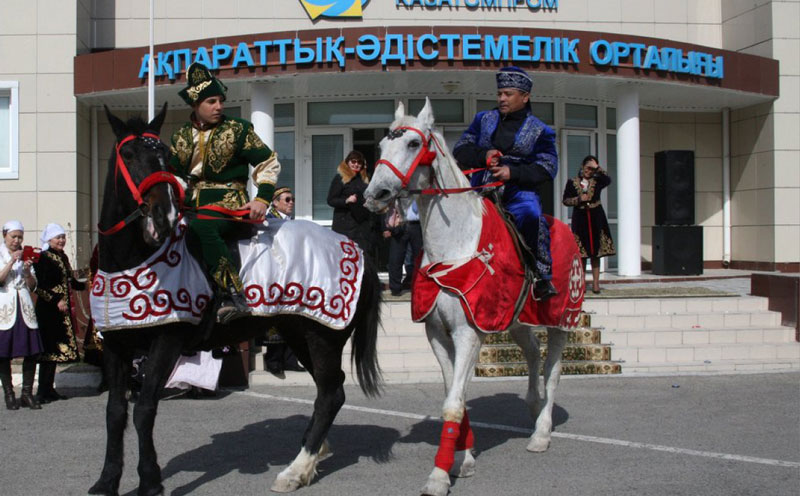 Как и все мангистаусцы, комбинат празднует приход весны 14 марта. Традиция сложилась на предприятии почти полтора десятилетия назад, как и обычай преподносить победителям многочисленных конкурсов главный и желанный приз – путевку на экскурсию по родному краю. Но прежде чем получить его, работники 15 подразделений состязались между собой в кулинарном искусстве, в силе и сноровке в национальных играх, в конкурсе на самый красивый национальный костюм и на лучшую юрту. На главной площади комбината перед информационно-методическим центром, как и повелось, были разбиты юрты, отличавшиеся друг от друга разнообразным убранством. Причем коллектив управления автомобильного транспорта отличился, установив настоящую юрту из войлока.В воздухе блуждал смешанный аромат свежевыпеченных баурсаков, национальных мясных изделий, плова. В каждой юрте гостеприимные хозяева предлагали отведать традиционный наурыз-коже, шубат, кумыс и, конечно, душистый чай с молоком. Особую палитру празднику придавали песни и танцы у каждой из 15 юрт.