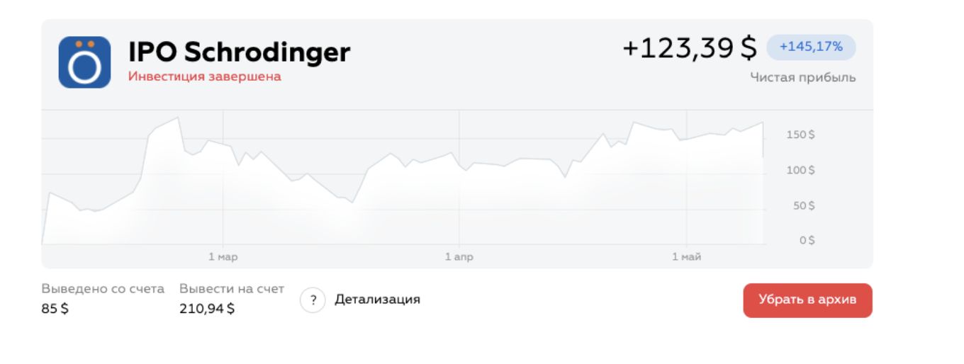 Срок инвестиции в IPO — три месяца. Согласно устоявшейся в США практике, это период, во время которого инвесторы должны держать IPO акции (чтобы не обрушить их цену на бирже). Брокер автоматически закрывает инвестицию по истечении этого срока. При закрытии инвестиции IPO всем участникам также приходит оповещение на почту. Благодаря четким временным рамкам каждый инвестор может вести календарь IPO. Также специальные календари можно найти в интернете.