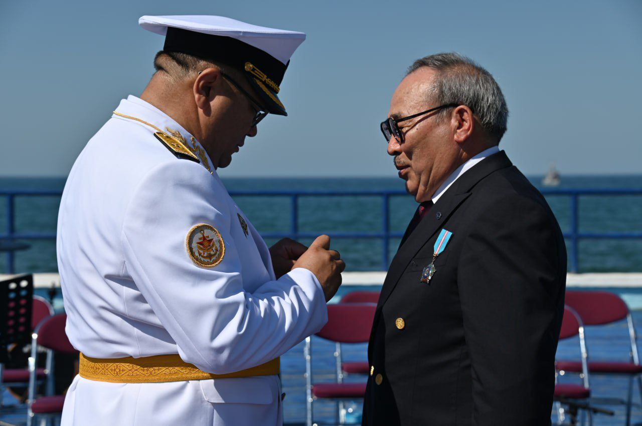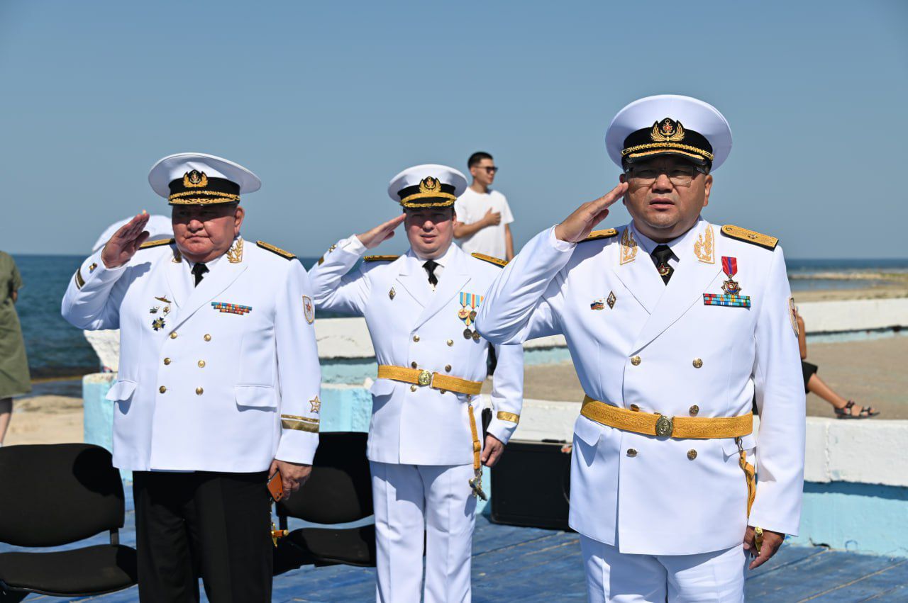 В торжественной церемонии приняли участие главнокомандующий военно-морскими силами ВС РК генерал-майор Серик Борамбаев и первый главнокомандующий Военно-морскими силами ВС РК контр-адмирал Ратмир Комратов.