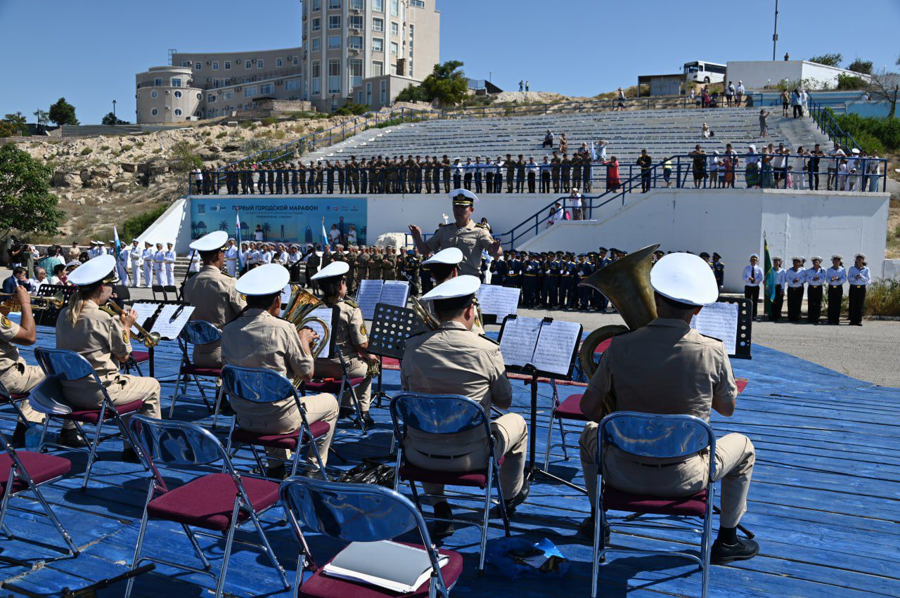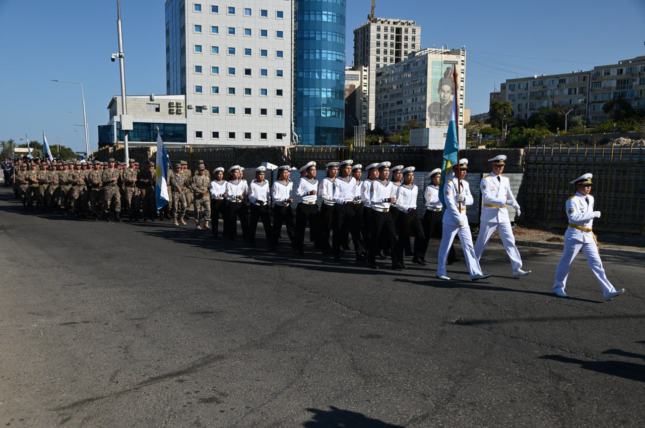 С гордо поднятыми флагами торжественным маршем по улицам города прошли личные составы военно-морской базы, бригады морской пехоты, авиационной базы, десантно-штурмового батальона морской пехоты ВМС и первого дивизиона пограничной службы.