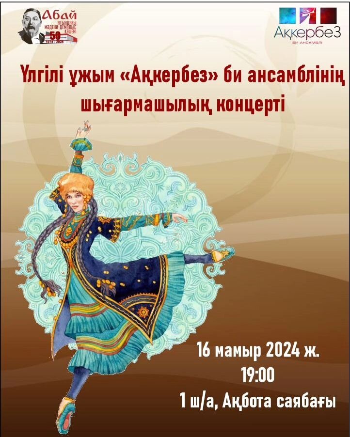 Так, творческий концерт образцового коллектива ансамбля танца «Ақкербез» в честь юбилея КДК имени Абая состоится 16 мая.