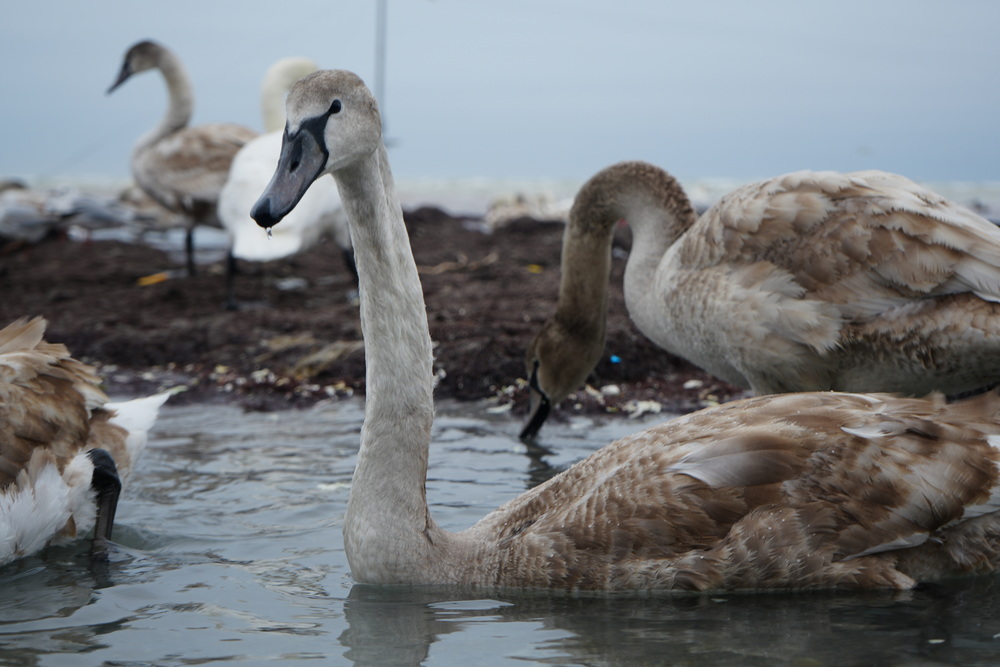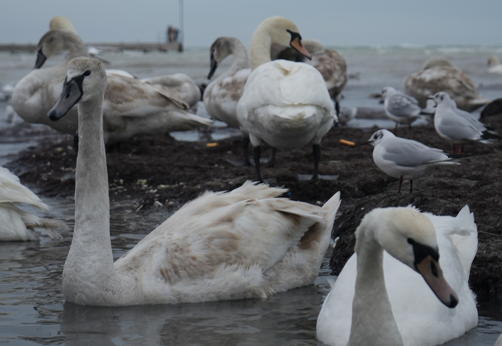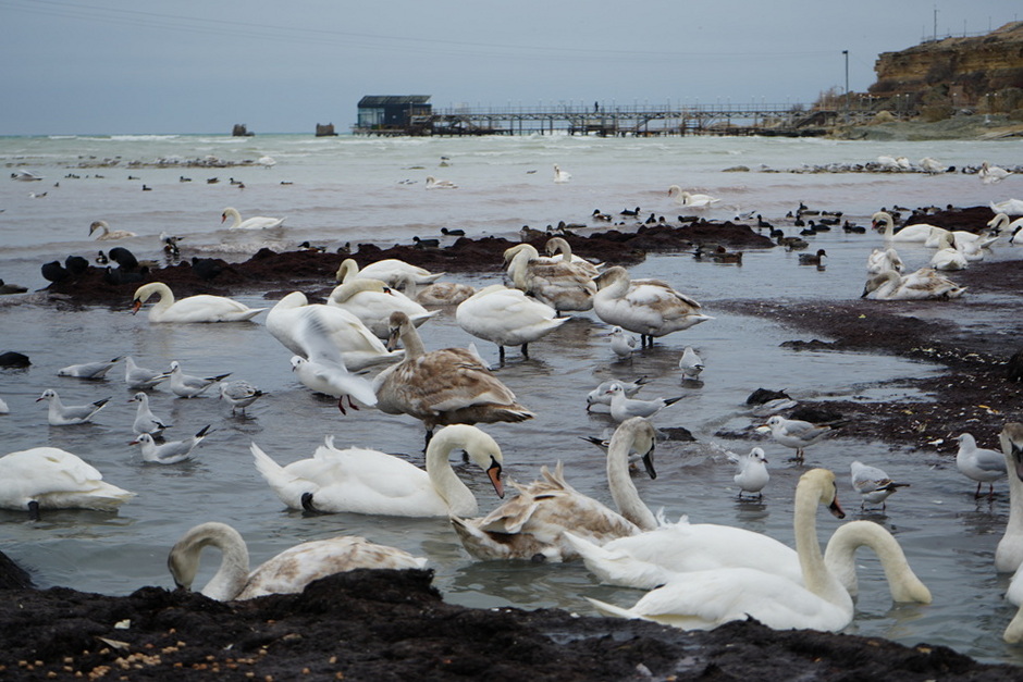 Сегодня, 15 февраля, на берегу можно увидеть не только лебедей, но и чаек, уток и других птиц.