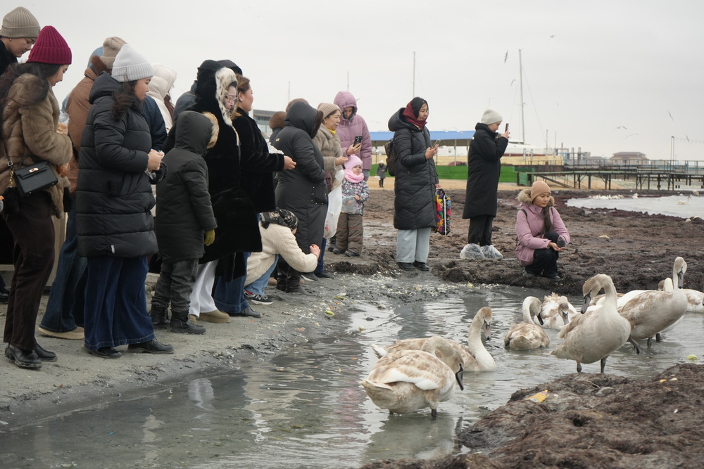 Набережная Актау продолжает радовать население скоплением долгожданных пернатых: десятки лебедей подплывают к людям вплотную и берут еду прямо с рук. Сложившиеся обстоятельства приводят в восторг как детей, так и взрослых. Корреспондент Lada.kz подготовил фоторепортаж и выяснил, что думают местные жители и гости города о массовом явлении и условиях обитания птиц.
