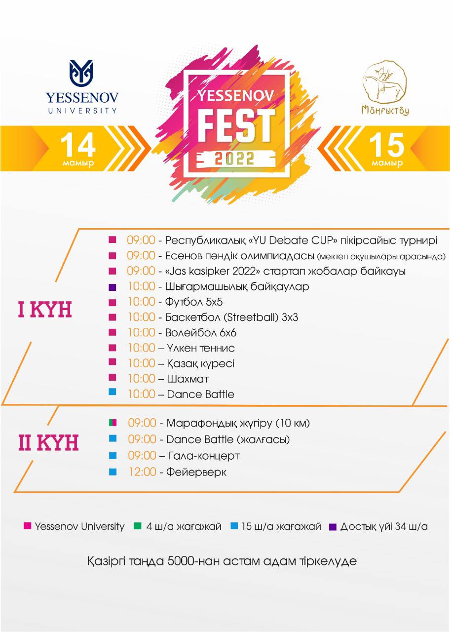 В рамках фестиваля пройдут соревнования по семи видам спорта, включая футбол 5х5, стритбол 3х3, волейбол 6х6. Свои силы участники также попробуют в большом теннисе, казак куреси, в шахматах. В программе ещё бег на 10 километров.